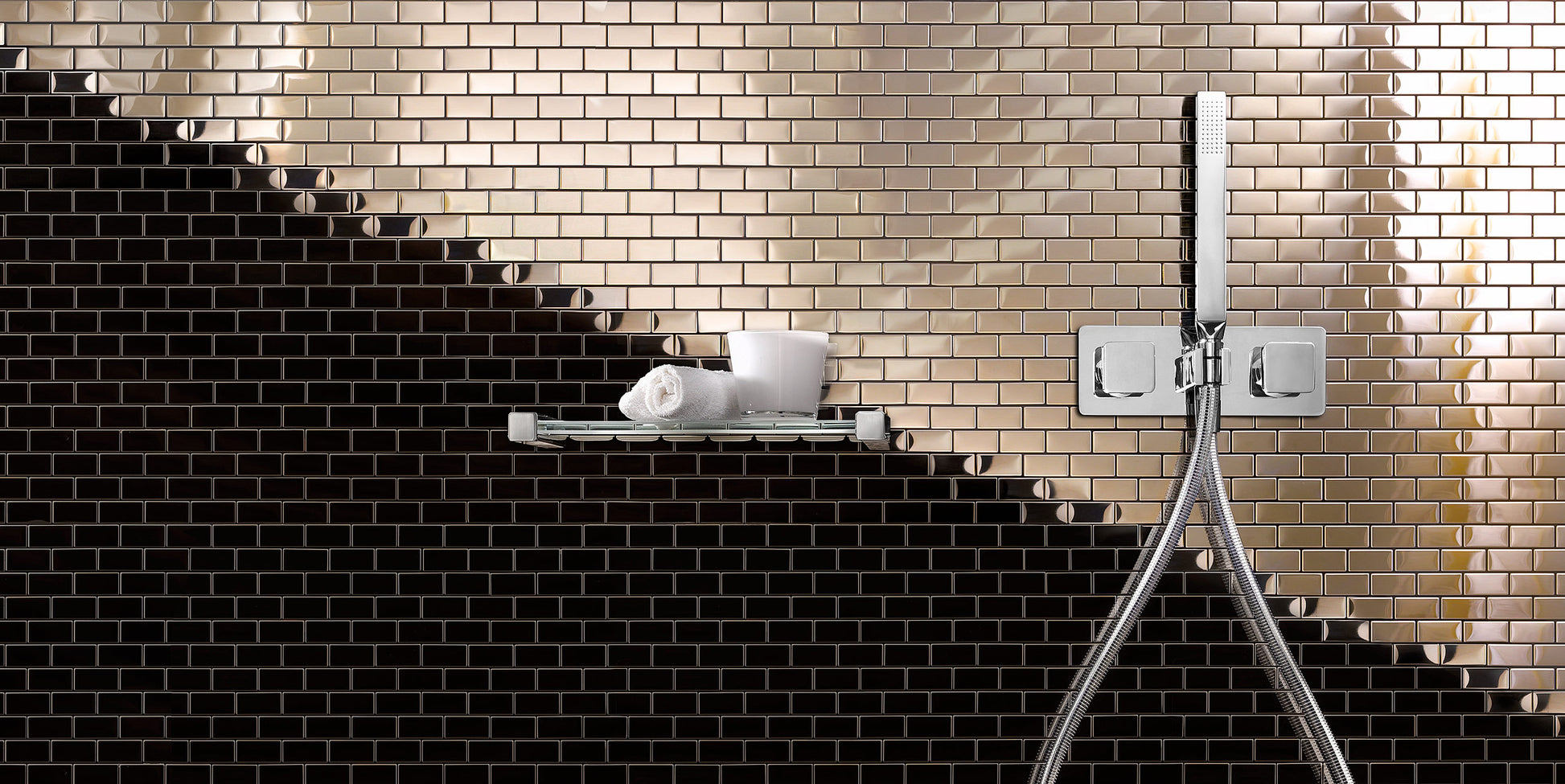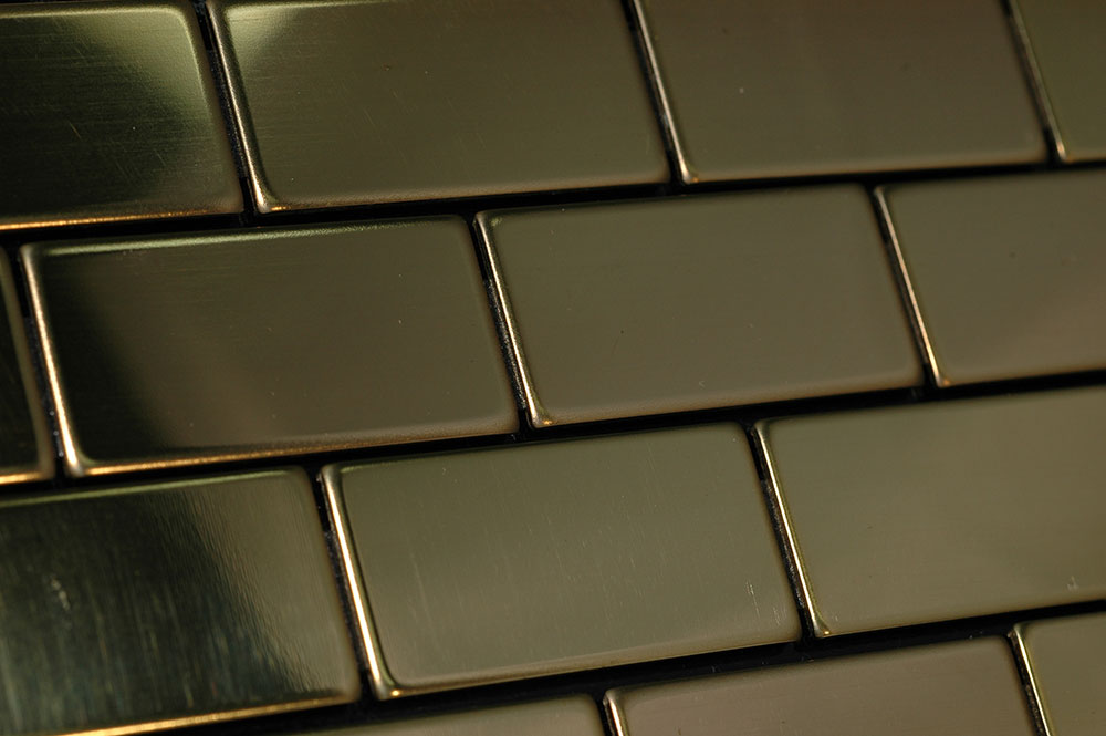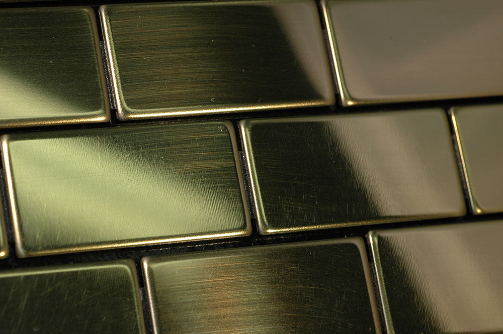 - Brass tiles will patina beautifully over time. Consider ALLOY’s Titanium Gold brushed finish if you prefer a maintenance-free alternative